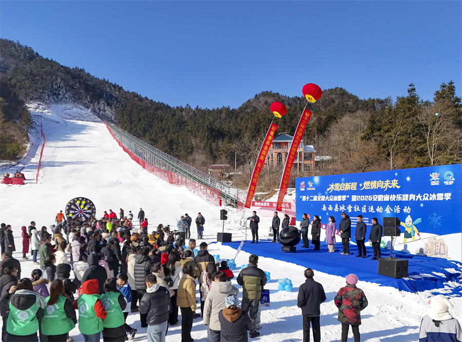 1月24日,“冰雪启新程 燃情向未来”第十二届全国大众冰雪季暨2026安徽省快乐健身大众冰雪季岳西县冰雪社区运动会在大别山国际滑雪场启幕。活动吸引众多滑雪爱好者前来体验,大家在专业教练的指导下驰骋雪道,尽享冰雪运动的速度与激情。