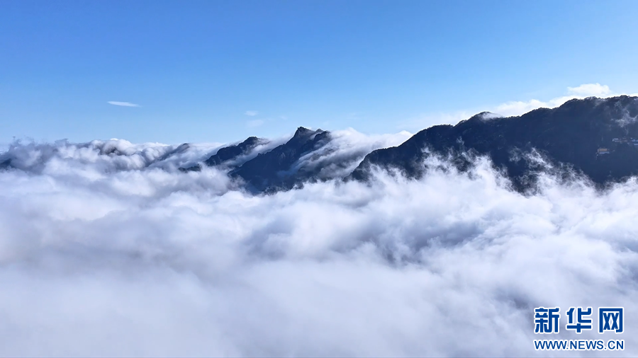 近日,安徽九华山雨后初霁,山间云雾蒸腾,形成了壮美的流云飞瀑景观,云雾顺着山谷倾泻而下,如天河奔涌、白练悬空,美不胜收。