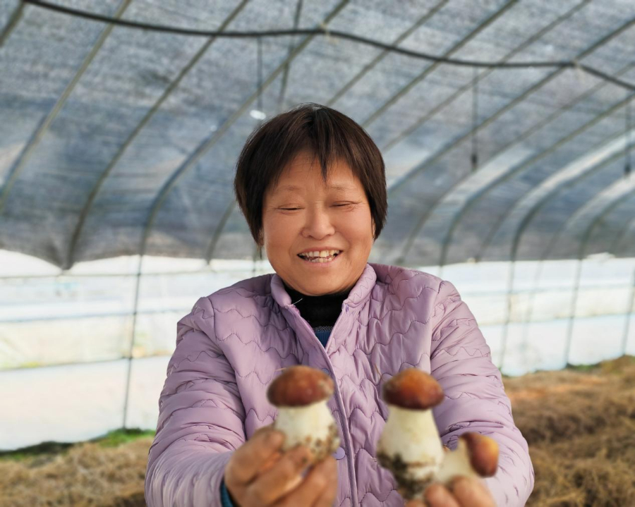 “这赤松茸都是咱村自己种的,刚从地里采摘、烘干。”提起村里的农产品,固镇县石湖乡康湖村党支部书记丁秀荷脸上洋溢着自信。